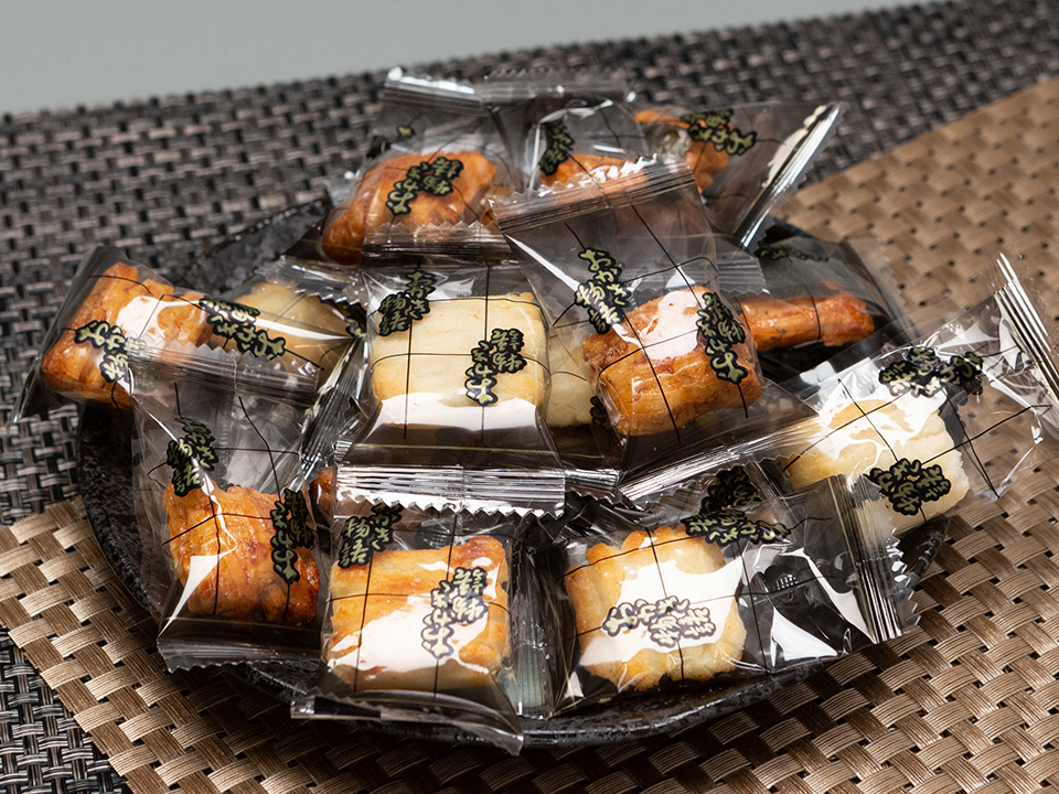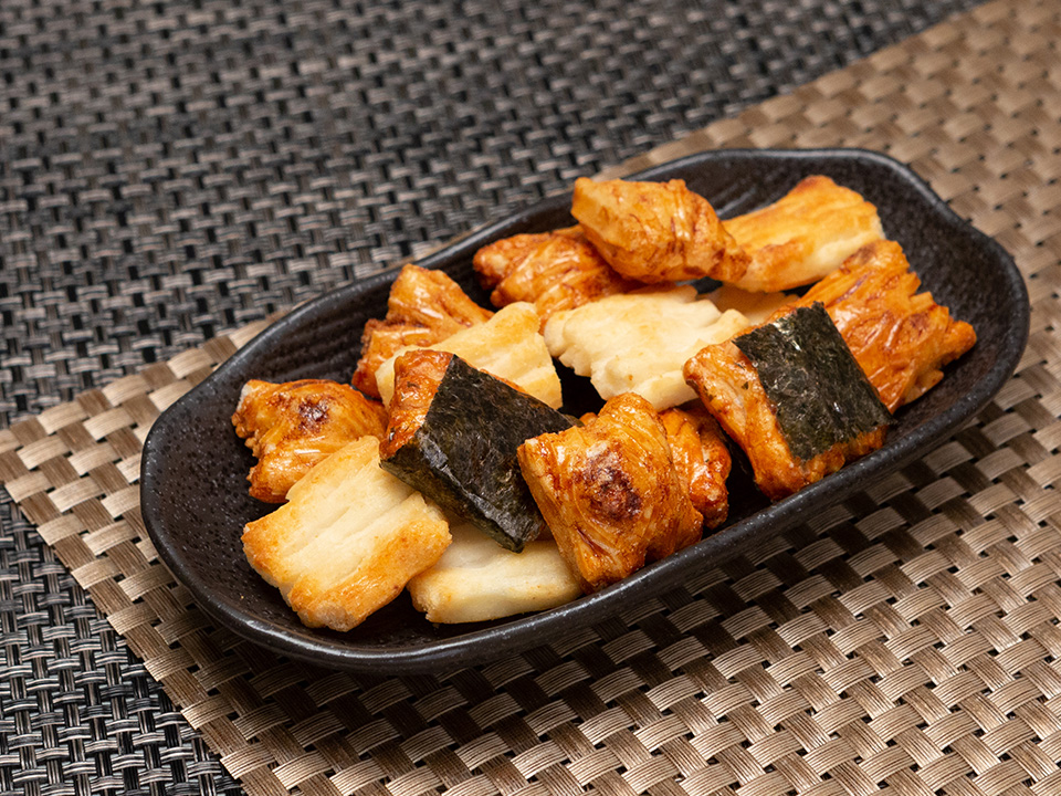 一口サイズの3種類(サラダ味・醤油味・海苔巻き味)をミックスした人気の逸品です。