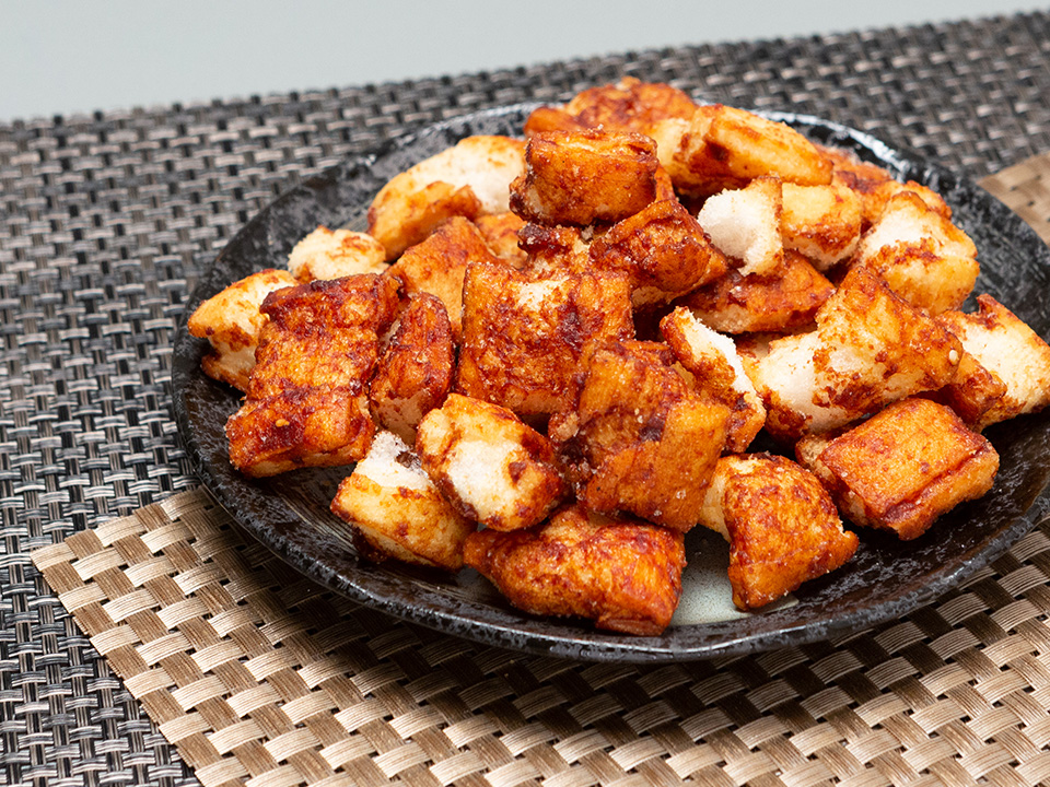 国産もち米を100%使用し、宇都宮の餃子の味を表現しました。隠し味に辛味噌を使い、味に深みを出した一口サイズの手揚げ餅です。